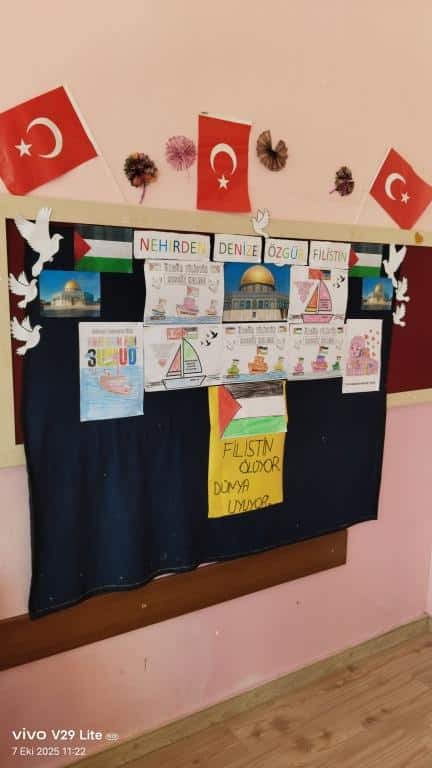 Milli Eğitim Bakanlığımızın "Filistin Farkındalık Etkinlikleri "kapsamında Erdem ,Değer ,Eylem modeliyle bütünleştirecek, evlatlarımızın sorumluluk bilincinin eleştirel düşüncelerinin demokratik duyarlılılıklarının ve insan hakları bilincinin artması konulu Filistin etkinliğimizi okulumuzda coşkuyla gerçekleştirdik.